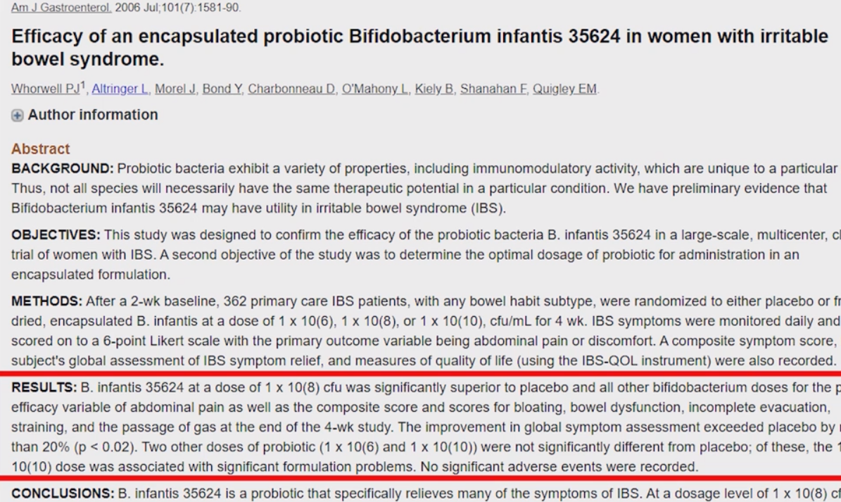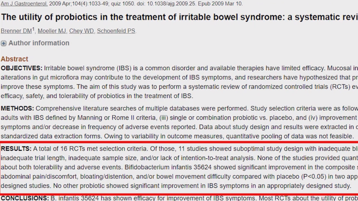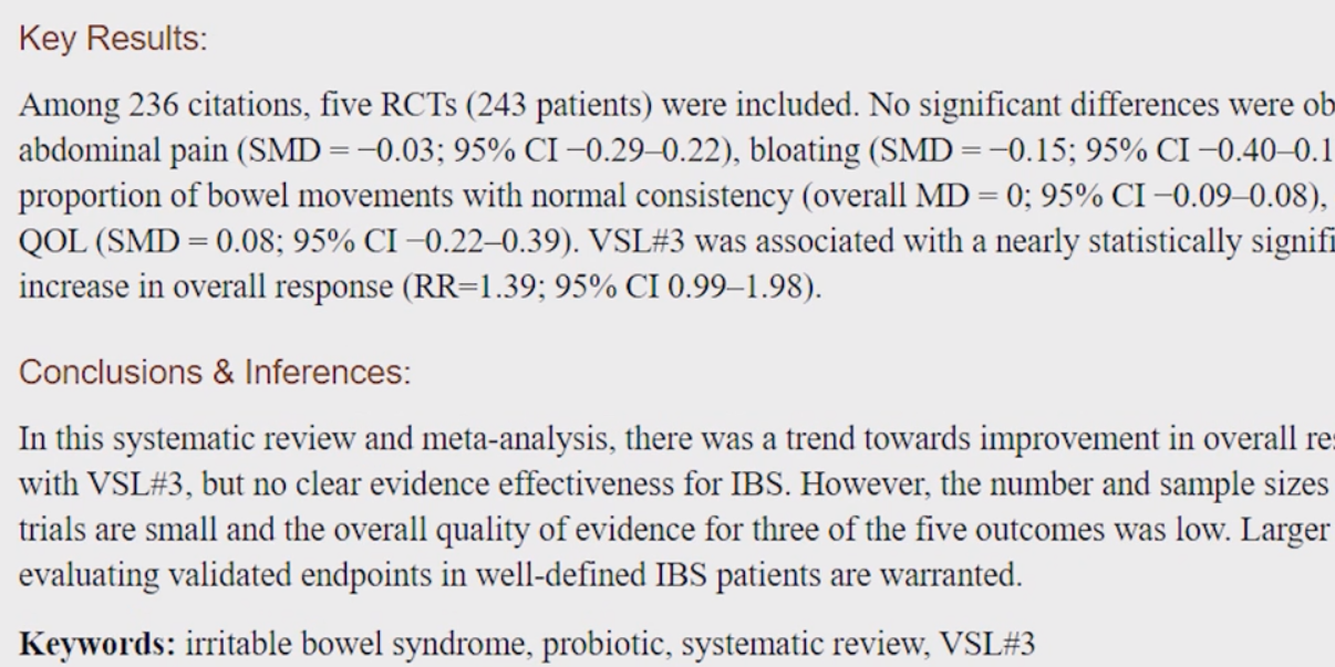 그리고 243명을 대상으로 한 무작위 대조시험을 체계적으로 고찰 한 논문에서도 과민성대장 증후군의 전반적인 증상 개선이 나타나는 것을 확인했습니다