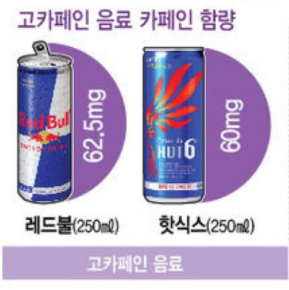 특히 에너지 음료인 레드불과 핫식스등에 함유된 62.5mg보다 훨씬 많은 카페인을 커피가 포함하고 있는 것으로 조사되었습니다.